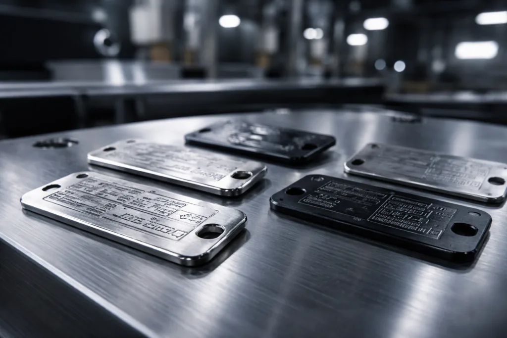 - Industrial: Laser-engraved data plates, asset identification tags
